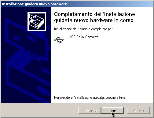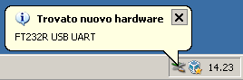 Figura 2.56. Qualche secondo dopo la fine della prima fase comparirà un'ulteriore messaggio pop-up nell'angolo destro inferiore dello schermo indicando di avere trovato un nuovo dispositivo hardware. Sarà necessario ripetere tutta la procedura dal punto 1 al punto 5 nuovamente per correttamente installare i driver USB.