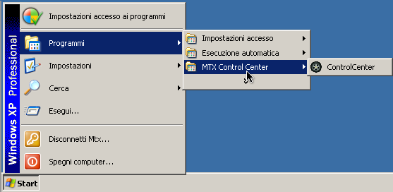 Dopo la fine dell'installazione sarà possibile avviare il programma tramite l'icona creata sul desktop (figura 3.1) o dal menů Start > Programmi > MTX Control Center (figura 3.2).